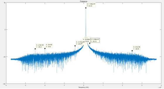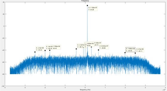 输入单音信号中心频率为1511MHz,信号功率为0dBm,FFT点数为16384点,窗函数为汉宁窗。NCO频率为1500MHz。频谱分析结果如下图所示: