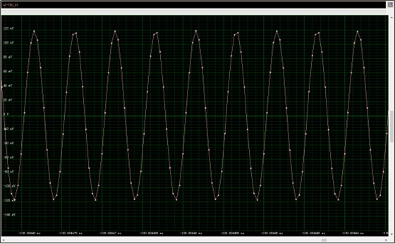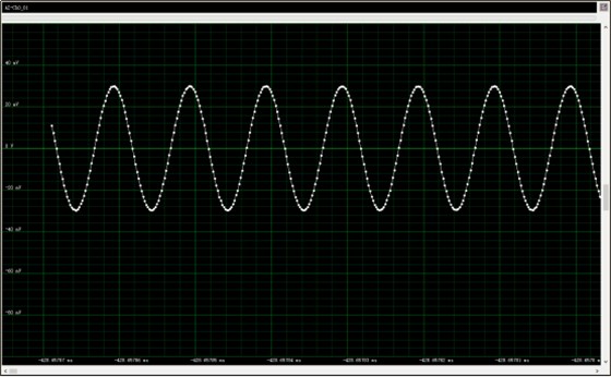 输入单音信号中心频率为100MHz,信号功率为0dBm,采样率5Gsps,原始信号采集。信号时域如下图所示: