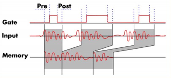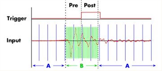 当板卡工作在ABA模式下,触发信号到来时,开始快速采集信号,触发信号没有时,采样率降低,可以保持连续采集数据。