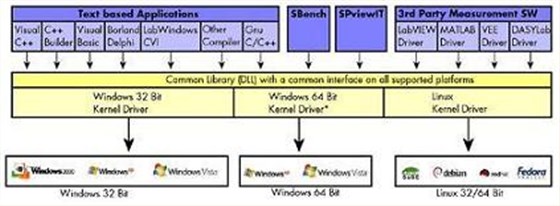 Spectrum公司提供完整的软件开发平台,具备二次开发API函数和丰富的例程。并提供集成应用程序SBench6-Pro,可以完成多块采集模块集成控制和生实时波形显示: