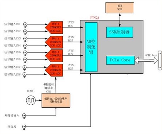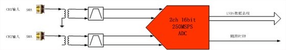 1.8通道16bit250MSPS采集,50欧姆交流耦合,支持2Vpp输入。