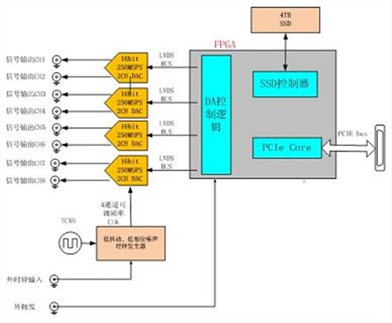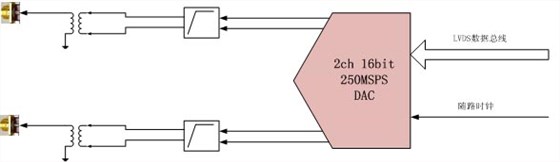 1.8通道16bit250MSPS回放,50欧姆直流/交流耦合。2Vpp输出。