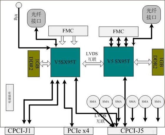 FPGA是系统重要组成部分。主要负责对AD采样数据的预处理及输出DA回放数据,是整个板卡的主处理核心。
