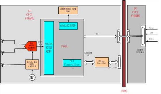 该系统组成由6UCPCI采集卡和后插板组成,如下图所示: