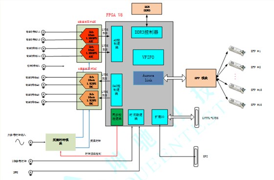 每个模块集成4通道10bit 1.25GSPS ADC采集。