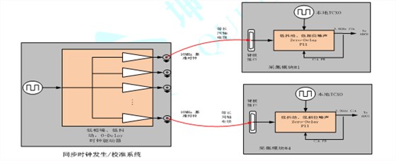 时钟驯服模块:根据GPS输出的1pps信号,同步每个采集模块的本地恒温晶体;同时产生1s频率的