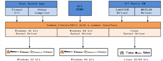 l应用软件基于Windows 32位/64位平台,具有虚拟示波器功能,方便设置硬件,读取/保存数据以及波形显示/频谱分析功能。其功能和界面如下所示: