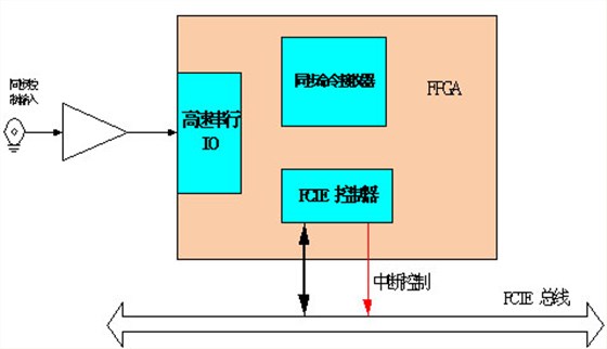 同步接收模块通过高速串行总线接收到主控模块的同步命令后,通过PCIE总线向系统申报中断,系统软件接收到中断申请后控制本地采集器开始工作,同时接收来自主控模块的时间信息,将当前采集数据打入时间标签。