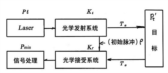 其测距原理为:由激光器对被测目标发射一个光脉冲,然后接收系统接收目标反射回来的光脉冲,通过测量光脉冲往返的时间来算出目标的距离。