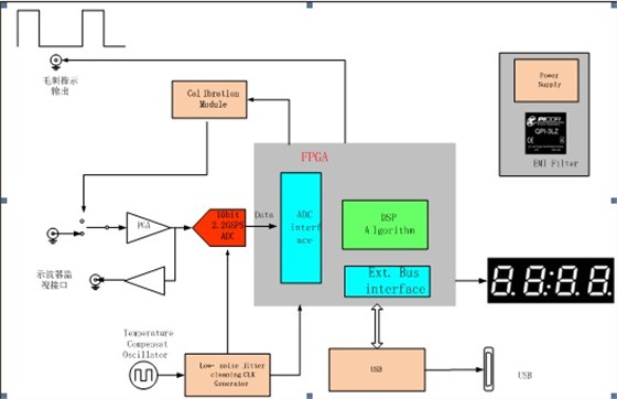 低噪声模拟前端,支持+/-5V~+/-200mV信号输入,50Ω阻抗 BNC接口。