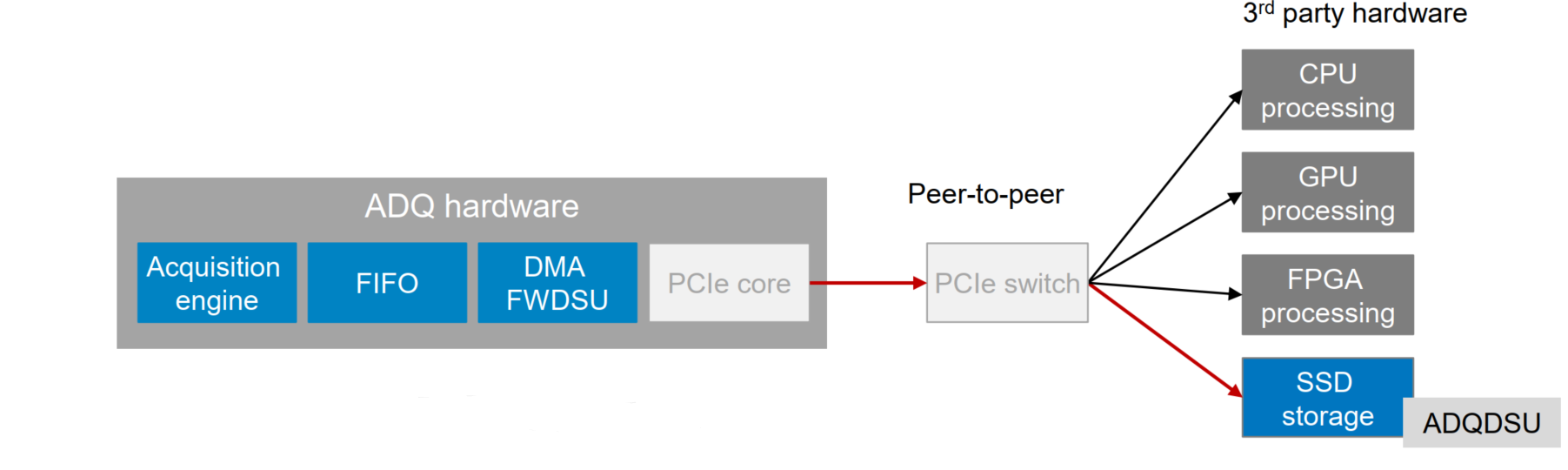 数字化仪还支持Peer to Peer(P2P)直接传输到GPU进行后处理。与需要通过主机PC的RAM复制数据的传统解决方案相比,P2P提供了巨大的优势。有了P2P, CPU和RAM都可以用于其他任务,数据可以以7GByte /s的速率在数字化仪和GPU之间直接传输。